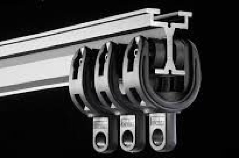 It is a very strong yet lightweight track for use in stage & studio and suitable in straight runs only, walk along, cord drawn or winch operated. The Sleekline Super carriers have rubber wheels that have bearings inside for smooth and silent running, the wheels run on the inside of the channel.